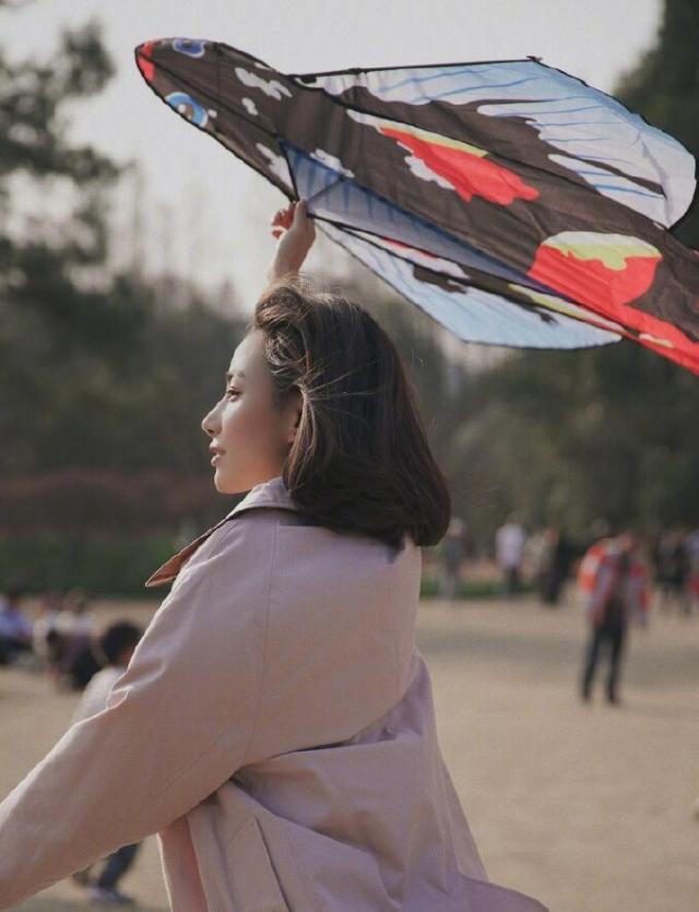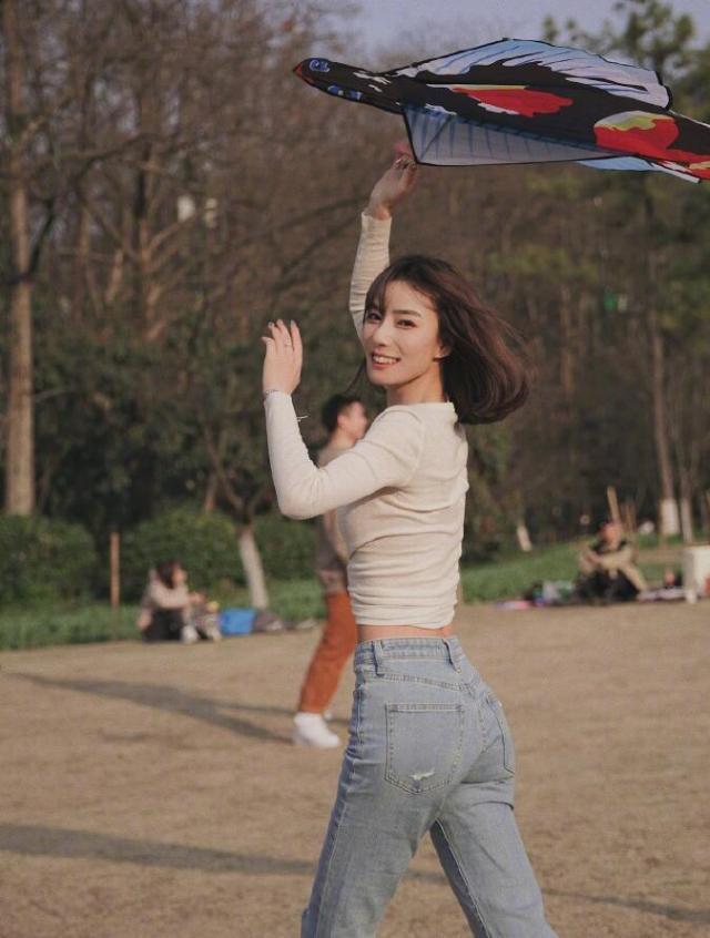 运动博主陈暖央户外放风筝晒美拍